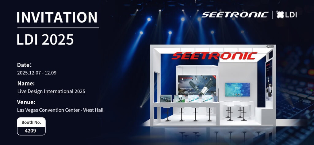 Als global führende Plattform für die Entwicklung von Bühnentechnik versammelt die LDI zahlreiche Top-Marken der Branche. Seetronic, ein weltweit tätiger Entwickler und aufstrebender Innovator im Bereich audiovisueller Lichttechnik, präsentiert auf der 38. LDI unter dem Motto „[Thema einfügen]“ erneut seine neuesten technologischen Errungenschaften im Bereich Steckverbinder und Kabelprodukte. „Licht und Ton verbinden – die Zukunft erschließen.“ Gemeinsam werden wir vielfältige, leistungsstarke und hochstabile Konnektivitätserlebnisse erforschen und die globale Unterhaltungsindustrie mit innovativer Technologie ausstatten.